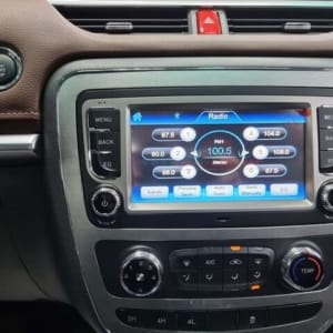 Интерьер автомобиля вполне себе «легковой» – комбинация приборов с двумя «колодцами» и монохромным дисплеем между ними, увесистый многофункциональный руль с трехспицевым дизайном, лаконичная центральная консоль с 7-дюймовым экраном мультимедийного комплекса.