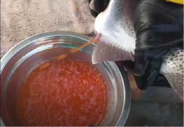 Зрелых самок выловили сачком из маточного водоёма, аккуратно сцедили икринки так, чтобы не передавить брюшко, а рыбу отправили обратно в водоём. В процессе «дойки», участвовали глава КФХ, его супруга и брат, уточняется в сообщении. Эксперимент признан удачным.