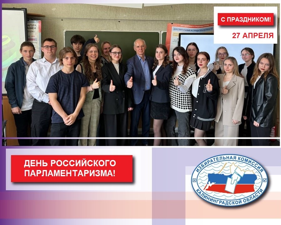 В преддверии Дня российского парламентаризма 26 апреля 2024 года член Избирательной комиссии Калининградской области Сергей Юспин провел открытый урок с учащимися старших классов школы №2 поселка Взморье в рамках проекта «Классные встречи» Общероссийского общественно-государственного движения детей и молодежи «Движение первых».