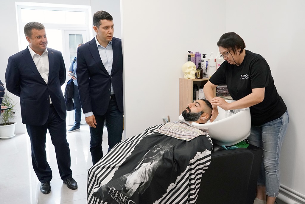 Также губернатор прогулялся по улицам Гусева, где запланирован капитальный ремонт. Зашёл и в парикмахерскую для мужчин на Северной улице: барбершоп и салон маникюра открыты в одном помещении при региональной поддержке – с использованием средств соцконтракта. Две многодетные мамы объединились, арендовали смежные помещения, чтобы трудиться в качестве самозанятых. Мама четверых сыновей Елена Луц, мастер с 30-летним стажем в сфере парикмахерского искусства, после заключения социального контракта приобрела необходимое оборудование, арендовала помещение и прошла курсы повышения квалификации. У Елены уже много клиентов, а раз в месяц она на безвозмездной основе выполняет стрижки для детей-инвалидов.