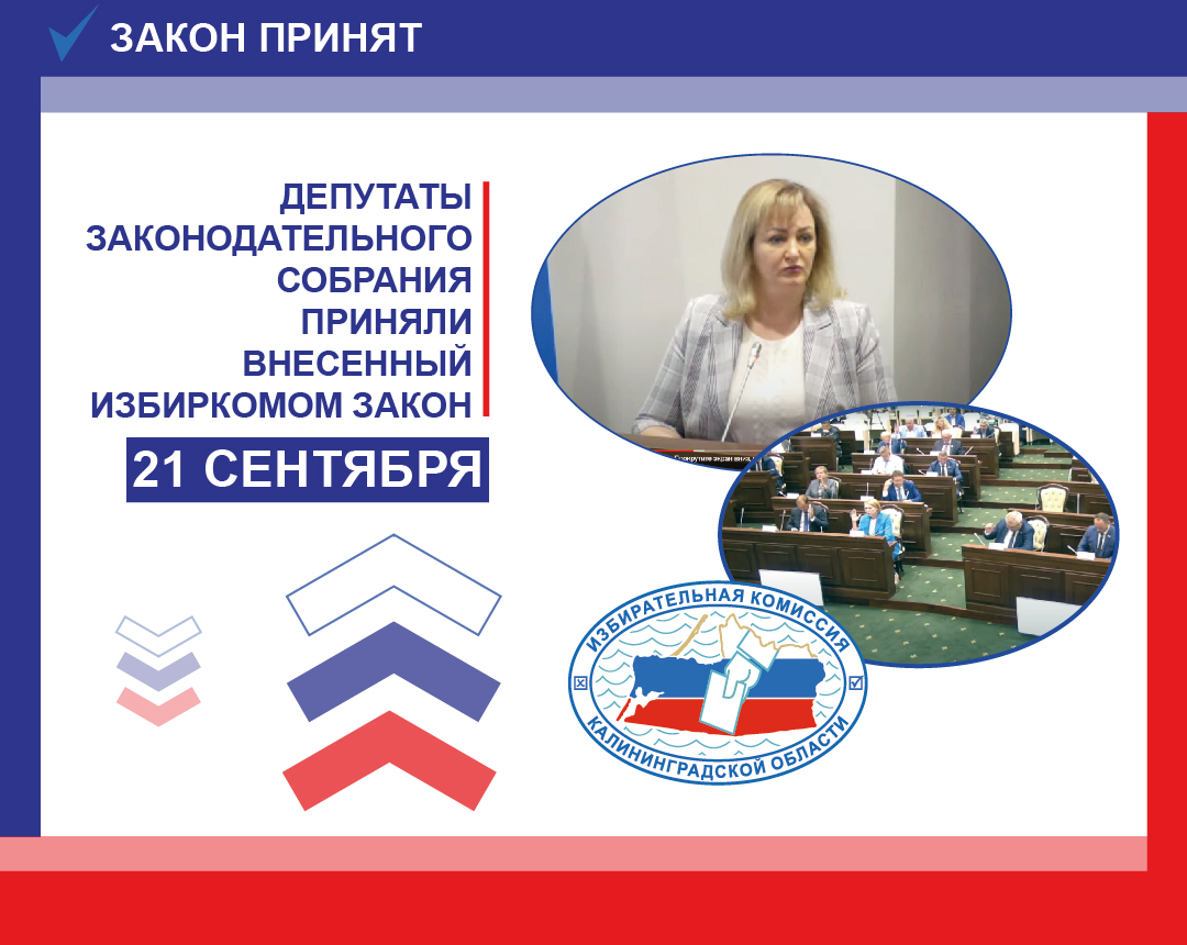 Изменения были внесены в Уставные законы «О выборах Губернатора Калининградской области», «О выборах депутатов Законодательного Собрания Калининградской области».