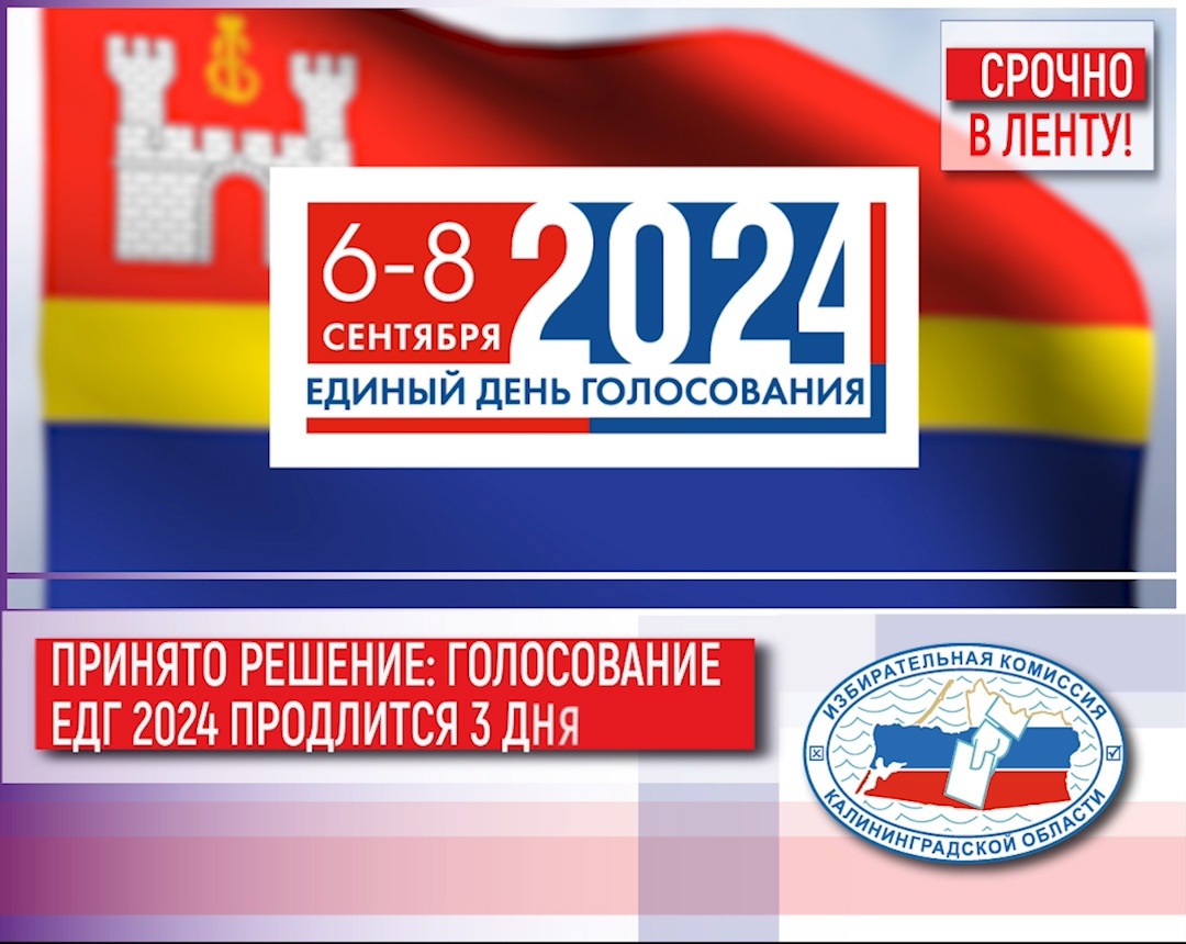 Сегодня состоялось 188 заседание Избирательной комиссии Калининградской области. Только что принято решение о том, что голосование на выборах, назначенных на единый день голосования 8 сентября, будет проходить в течение 3 дней - 6,7 и 8 сентября.