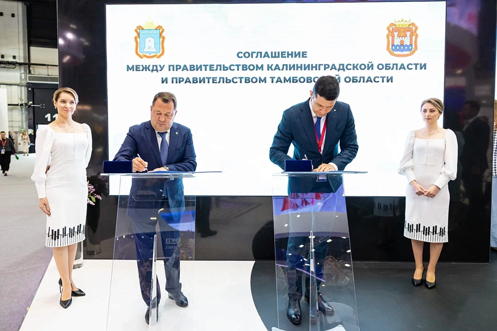 В Санкт-Петербурге в кулуарах Петербургского международного экономического форума сегодня, 14 июня 2023 года, главы двух регионов – Калининградской области и Тамбовской области – Антон Алиханов и Максим Егоров подписали соглашение о сотрудничестве возглавляемых ими субъектов РФ .