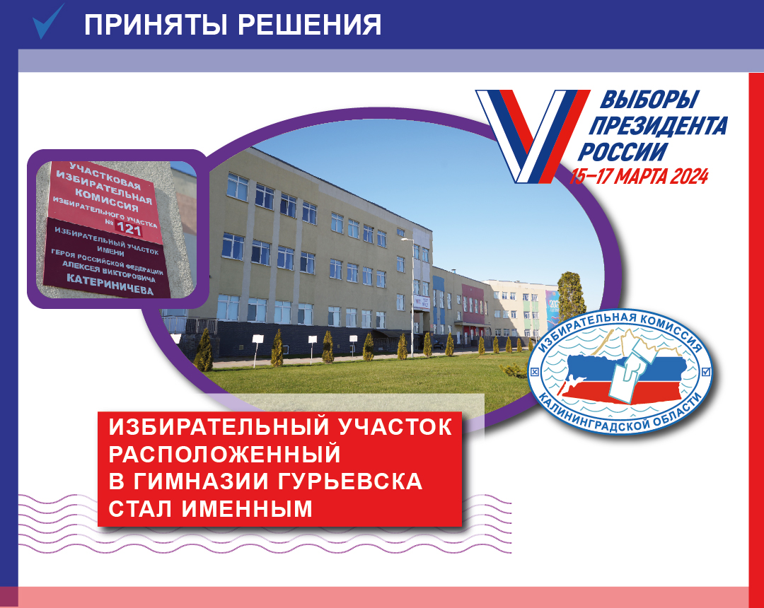 Облизибирком принял решение о присвоении статуса именного избирательному участку № 121 в Калининградской области В Гурьевском городском округе избирательному участку №121 присвоено имя Героя Российской Федерации Алекс