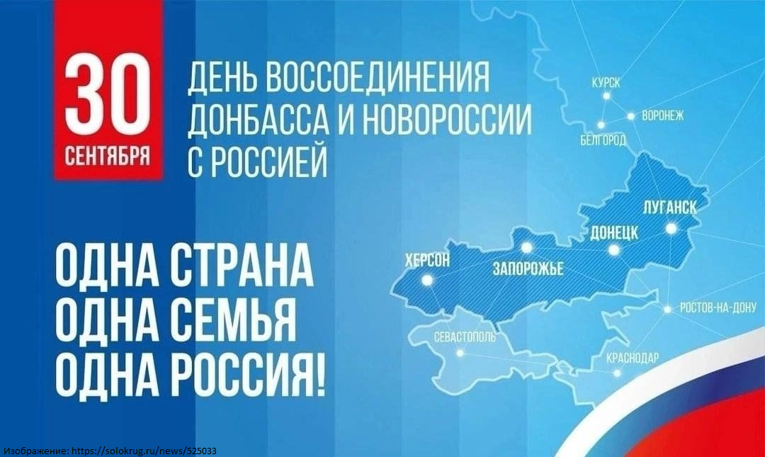 30 сентября – это особый день, который отмечается как День воссоединения Донецкой Народной Республики, Луганской Народной Республики, а также Запорожской и Херсонской областей с Российской Федерацией. Этот день символизирует исторический момент, когда в 2022 году эти территории официально стали частью России.