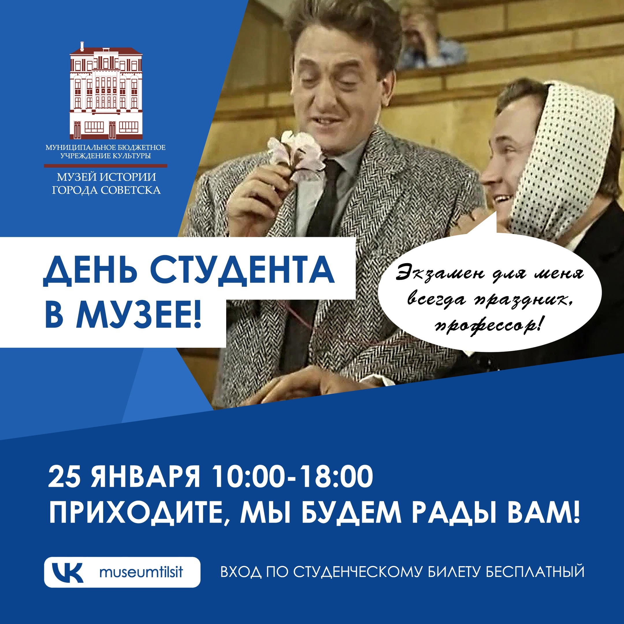 Именно им, студентам, в этот день мы подарим бесплатное посещение постоянных экспозиций музея.