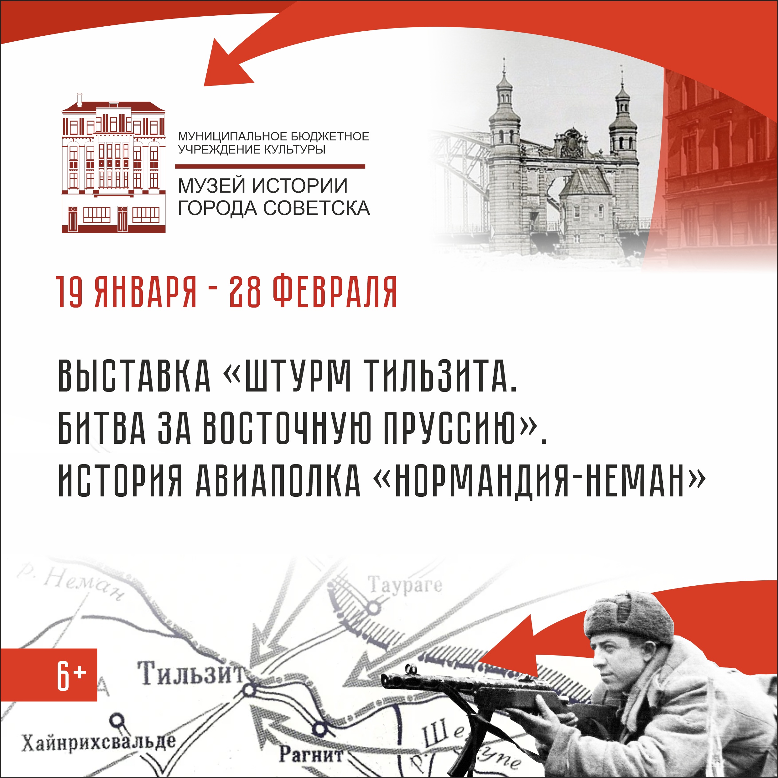 В этом году выставка «Штурм Тильзита. Битва за Восточную Пруссию» отмечена взаимодействием с Творческой группой «Авиация 3-го Белорусского фронта» (г. Калининград), в результате которого посетители смогут ознакомиться с историей авиаполка «Нормандия – Неман». Отдельная выставочная секция будет посвящена действиям авиаполка на территории Восточной Пруссии осенью 1944 – весной 1945 г.