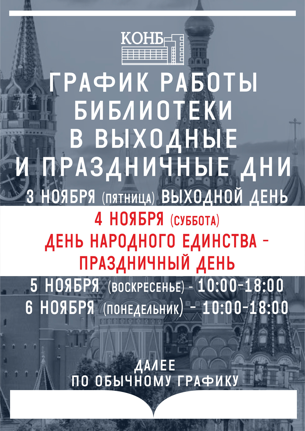 Обратите внимание на график работы Калининградской областной научной библиотеки в День народного единства и выходные дни: