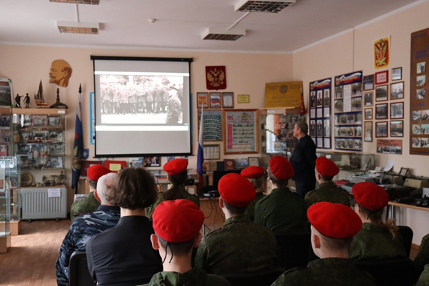 В завершении экскурсии кадеты продемонстрировали навыки строевой выучки и поздравили сотрудников с грядущим праздником защитника Отечества, исполнив патриотическую песню «Служить России суждено тебе и мне».