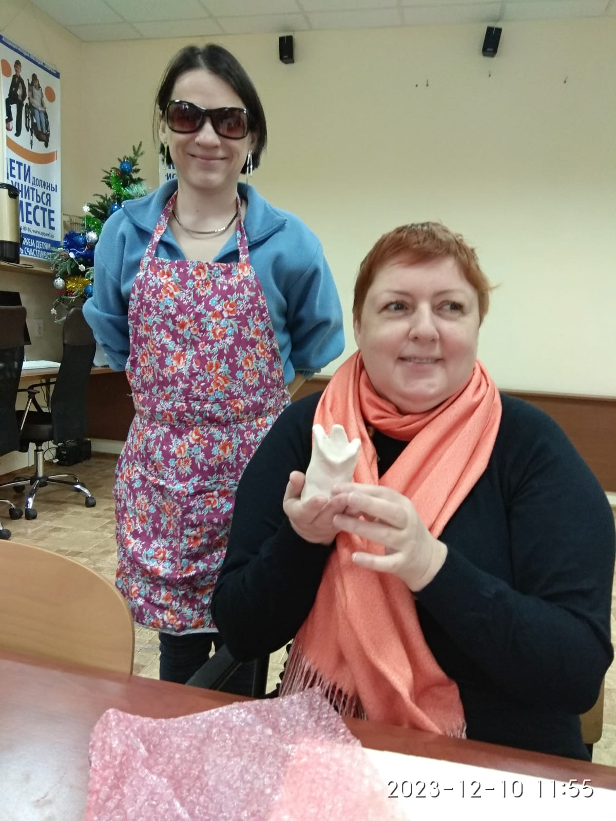 В воскресенье, 10 декабря, в КРО АМИ «Аппарель» прошло очередное инклюзивное занятие по невизуальной ручной лепке из глины.