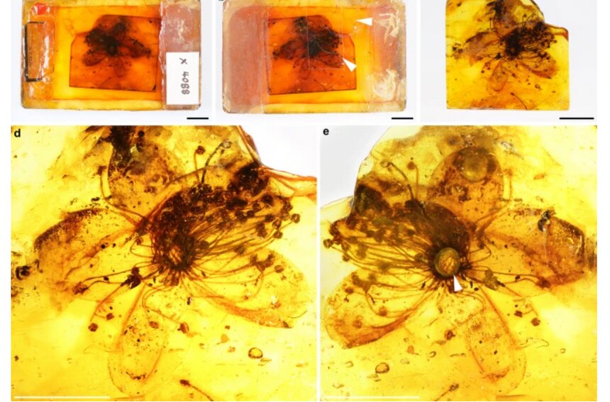 В Калининградской области немецкие и австрийские палеоботаники нашли в одном из образцов балтийского янтаря цветок возрастом более 38 млн лет.