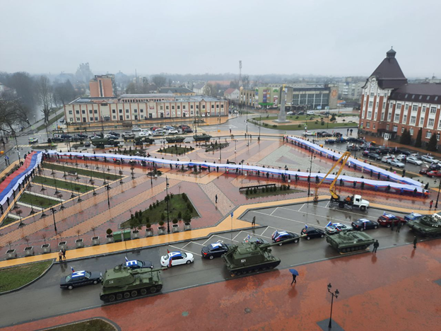 Автомобили стартовали с центральной площади Гусева и проехали по улицам города, прокомментировали в Калининграде собкору сетевой газеты Янтарный край в пресс-службе правительства Калининградской области. На площади перед храмом Всех Святых с помощью километрового триколора создали большую букву Z – в знак годовщины с начала СВО. В храме прошли молебны о здравии российских воинов, а также за упокой погибших при выполнении задач в зоне СВО.