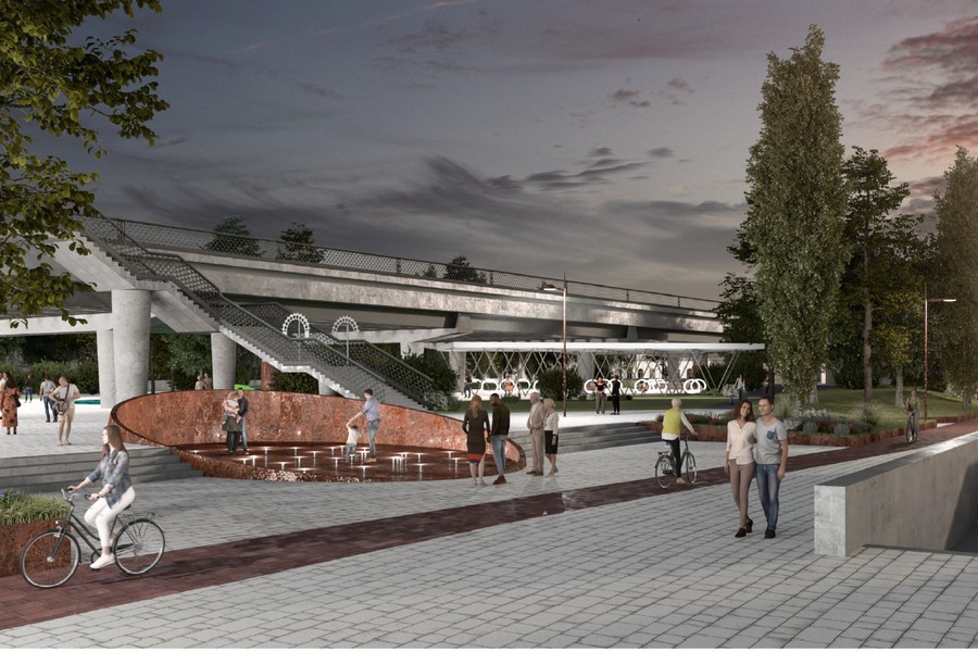 Общая площадь территории благоустройства составит 10 гектаров, речь об участке под эстакадным мостом и рядом с ним. Как отмечается в технической документации, подрядчику нужно будет предусмотреть размещение трех нестационарных павильонов площадью 200, 100 и 6 кв. м., экспозицию «философское зеркало» площадью около 100 кв.м.; детское игровое пространство «стройка» ориентировочной площадью 200 кв.м.; нестационарный каток ориентировочной площадью 300 кв.м.. Также там должны разместиться площадка с видом на монумент «Пионерам рыбопромыслового флота», нестационарный туалет и «пространство с подвесными сиденьями ориентировочной площадью 300 кв.м.».
