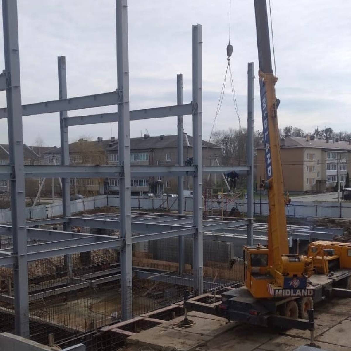 Подрядчик выполняет следующие работы по строительству ФОКа в Правдинске: залил перекрытия второго этажа и приступил к фасадным работам.