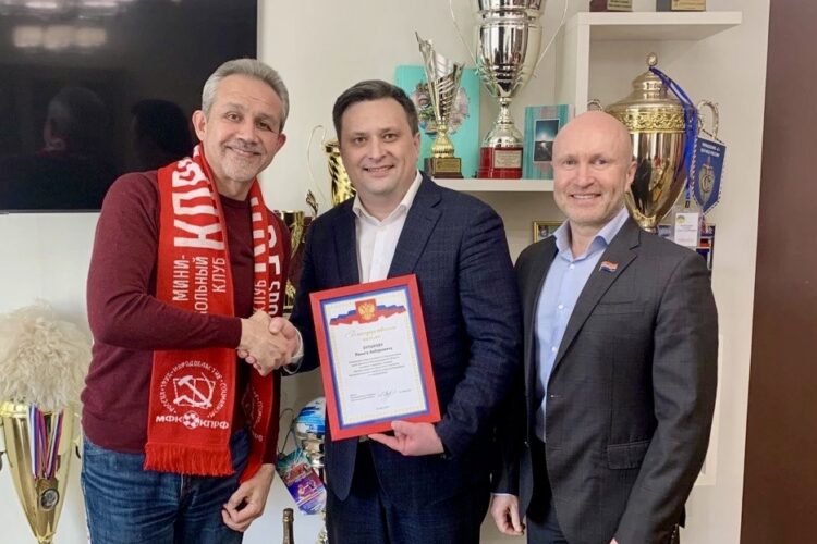27 марта состоялась встреча руководителя Калининградского обкома КПРФ Максима Буланова и члена фракции КПРФ в Законодательном собрании Калининградской области Артёма Вертепова с тренерским составом футбольного клуба КПРФ.