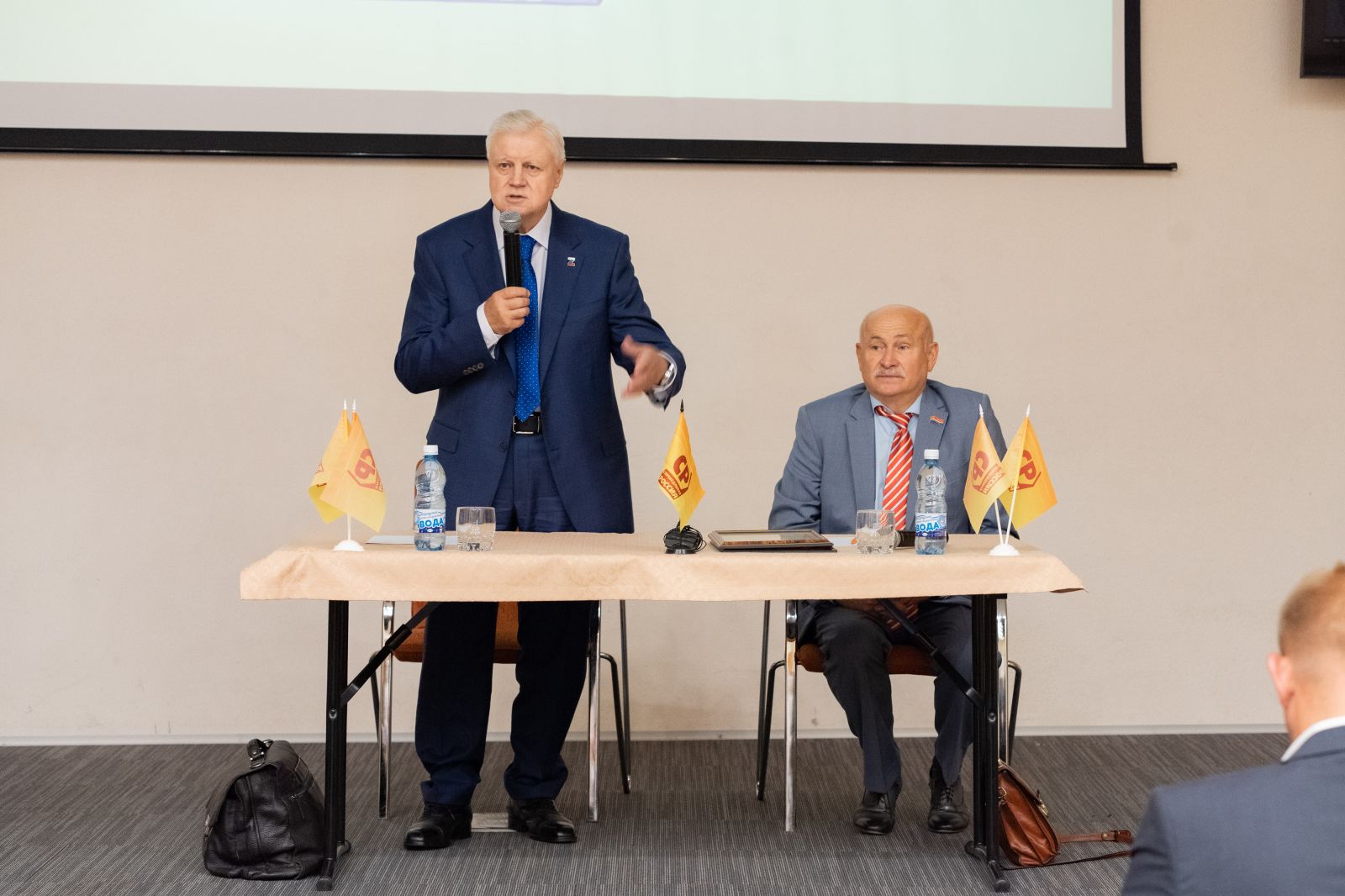 Отвечая на вопросы собравшихся первым к Сергею Миронову обратился бывший заместитель командующего Балтийским флотом, а ныне председатель Совета ветеранов Балтийского флота вице-адмирал Александр Иванович Бражник. Он поблагодарил Сергея Миронова и Партию за активное участие в помощи и поддержке военнослужащим Специальной военной операции.