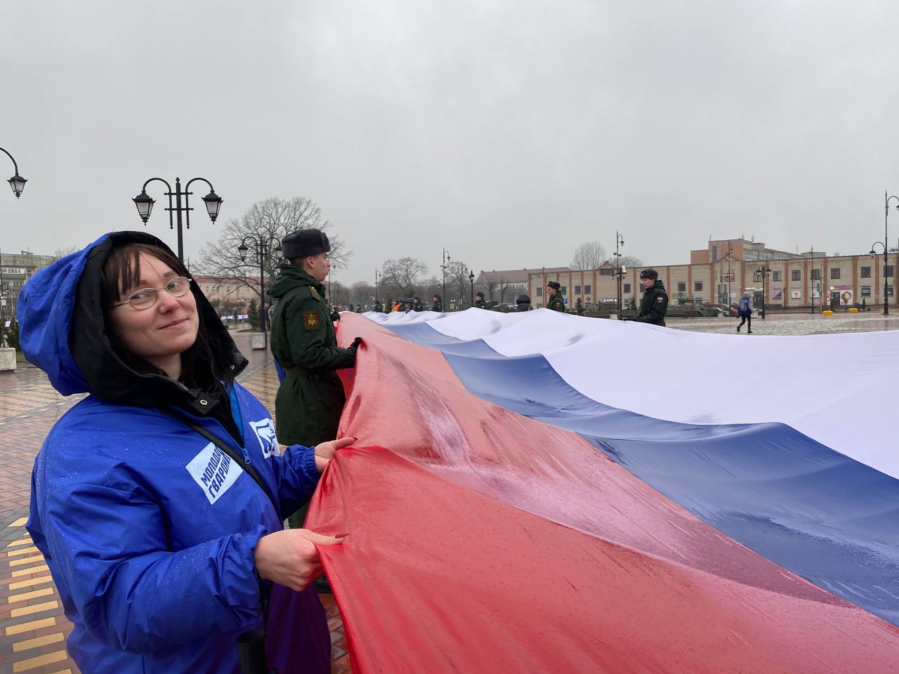 До старта на городской площади при участии наших молодогвардейцев, волонтеров, юнармейцев и неравнодушных жителей был растянут Российский триколор буквой Z.