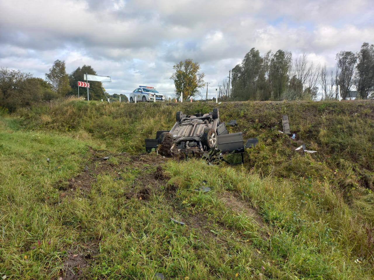 Легковой «Ситроен» съехал с дороги в кювет и перевернулся на 53-м километре дороги, ведущей из Гвардейска к госгранице с Литвой. Дорожное происшествие произошло накануне, 7 октября, около 09:50.