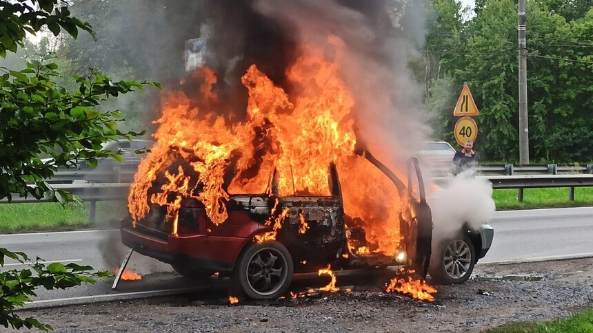 На Балтийском шоссе загорелся автомобиль (фото, видео)