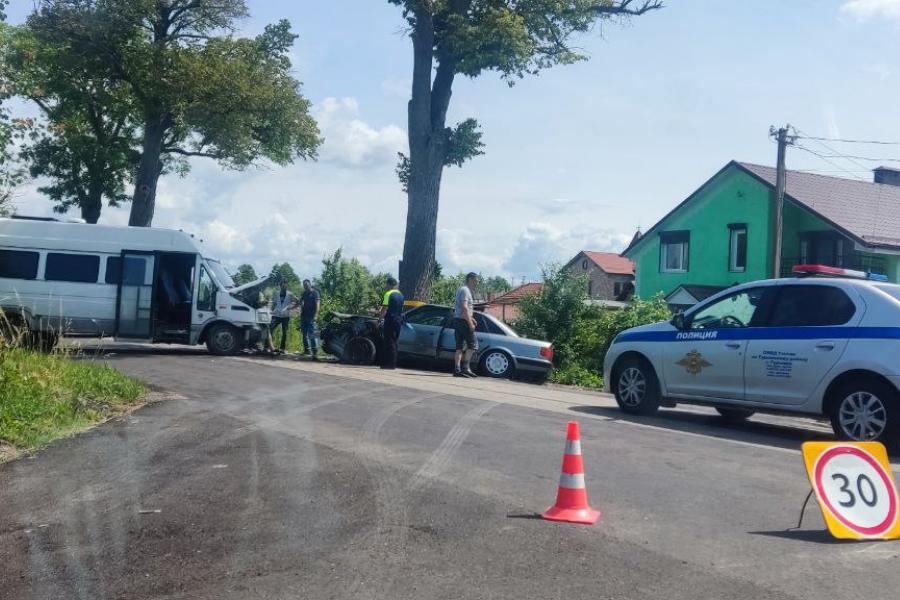 Под Калининградом столкнулись микроавтобус и легковое авто (фото)