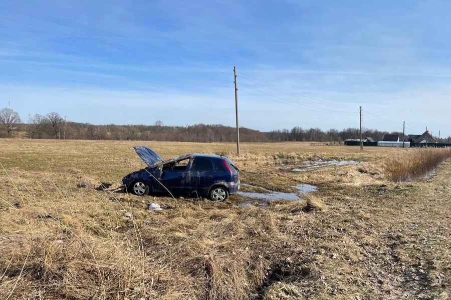 Под Краснознаменском «Опель» съехал в кювет и перевернулся (фото)