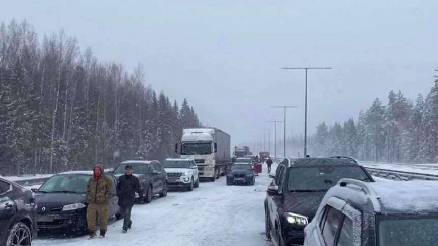 На федеральной трассе М-11 в Новгородской области столкнулись 32 машины, среди них 25 легковушек и 7 фур.