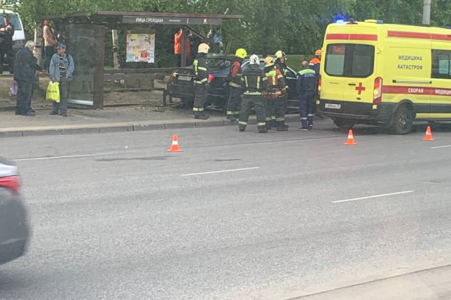 В Калининграде на улице Гагарина «Мерседес» протаранил автобусную остановку (фото)