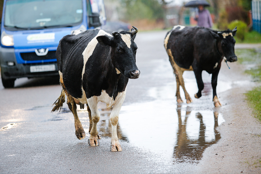 Выбежавшие на Приморское кольцо телята провоцировали ДТП (видео)