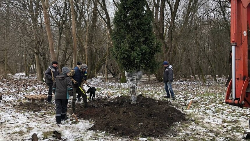 Ель аккуратно выкопали, упаковали, перевезли в парк Макса Ашманна и сразу же посадили, пока не пересохли корни. Зимняя пересадка даёт хвойным больше шансов благополучно прижиться. Весной его подкормят и будут поливать.