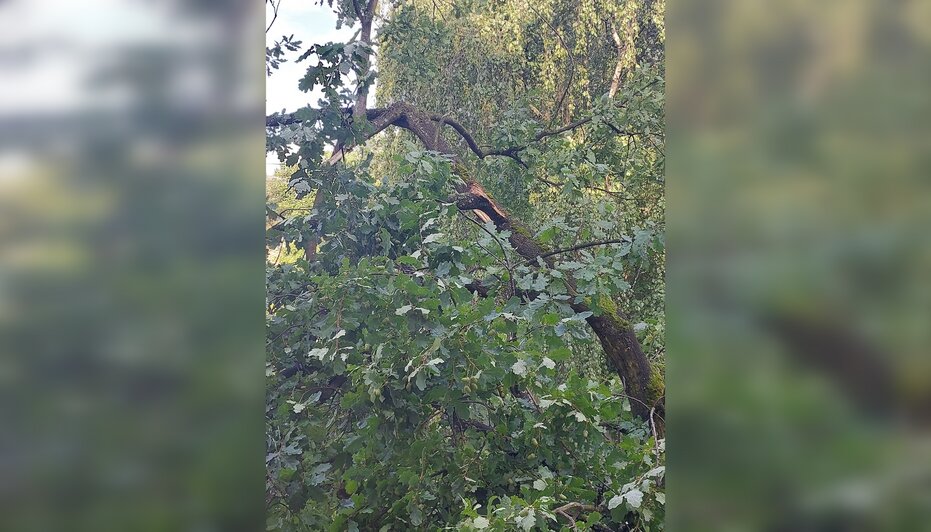 Дети, берегите голову: на Димитрова сломанные ветки дуба вынудили калининградцев просить помощи альпинистов