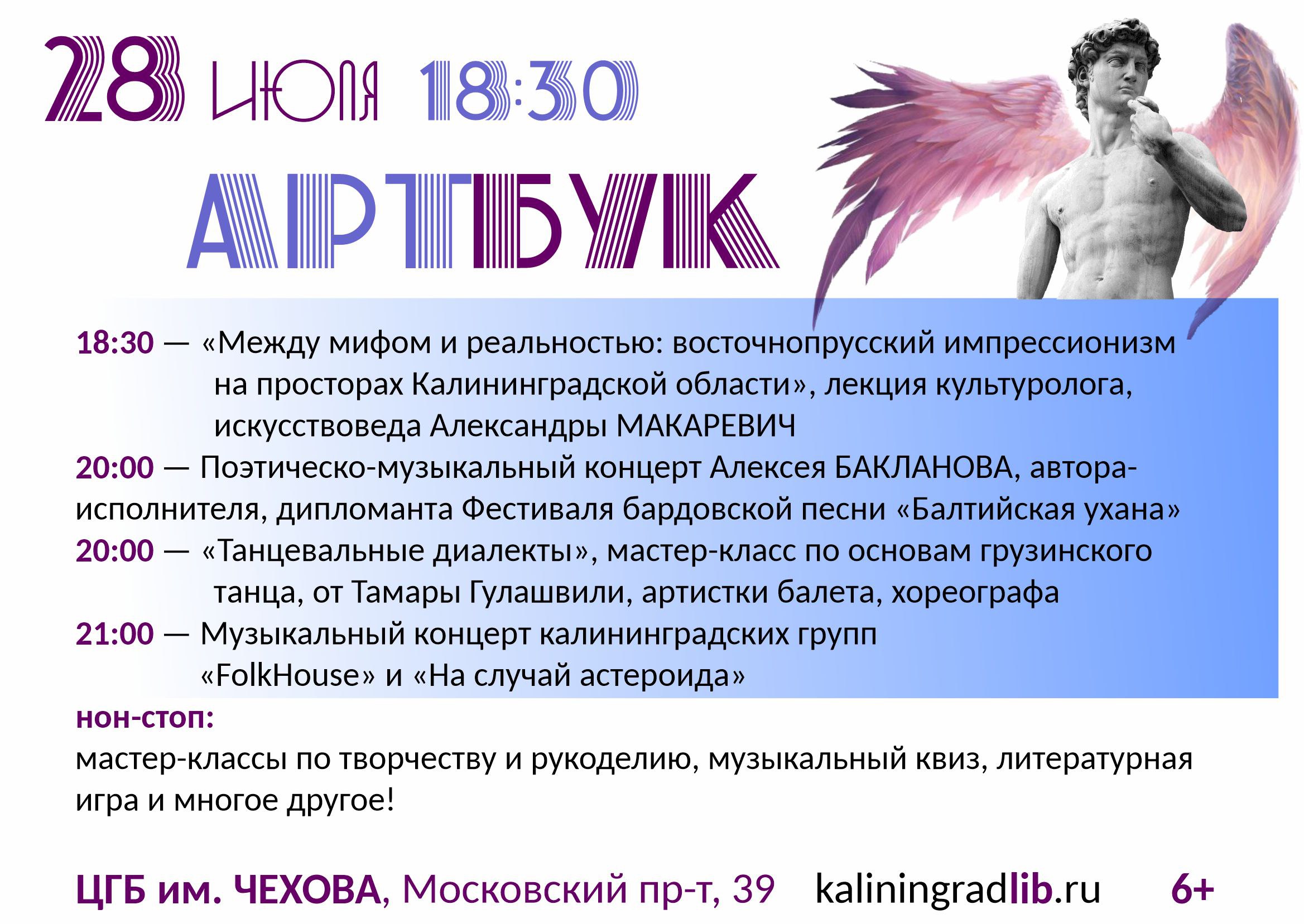 28 июля в «Чеховке» (Москвоский пр-т, 39) пройдёт «Арт-Бук вечеринка».
