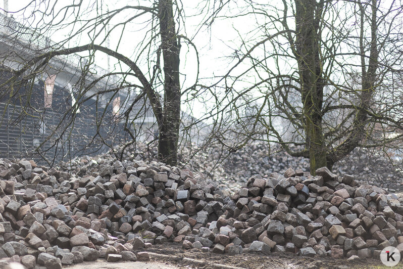 В Калининграде на острове Канта вывалили горы брусчатки. Об этом «Клопс» рассказали жители города.