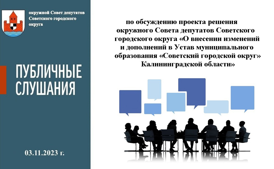 Уважаемые жители Советского городского округа! 3 ноября пройдут публичные слушания по обсуждению проекта решения окружного Совета депутатов Советского городского округа «О внесении изменений и дополнений в Устав муниципального образования «Советский городской округ» Калининградской области».
