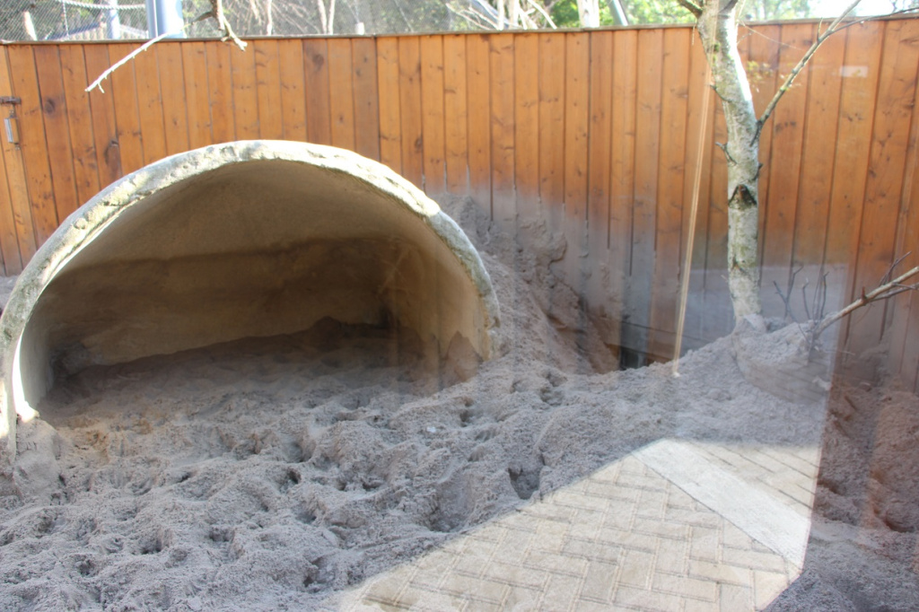 На дело Терик выходит ночью. Камеры видеонаблюдения снаружи пока нет, зато на нашем ютуб-канале есть трансляция из внутреннего вольера . Тоже весьма познавательное зрелище.