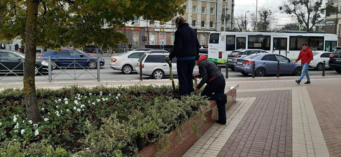 Клумбы на площади Победы начали украшать молодыми растениями. Об этом сообщается в телеграм-канале городской администрации в четверг, 27 апреля.