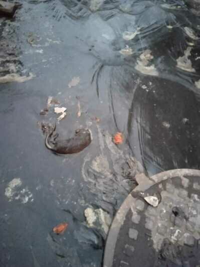 После дождя в ночь на во вторник, 2 апреля, из ливневой канализации вода опять начала выносить наружу средства личной гигиены, фекалии и мёртвых грызунов.