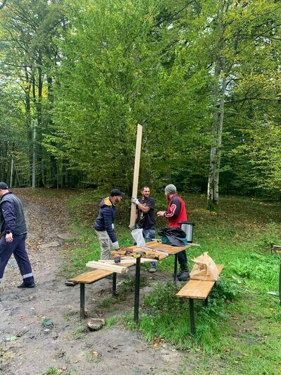 Сперва на роднике провели субботник, покосили траву, вырубили заросли кустарника, привели в порядок столики и скамейки, покрасили перила лестницы.