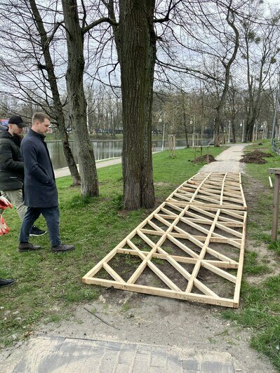 «В ходе мощения тротуара применили нестандартное решение, чтобы сохранить корни деревьев. Раньше здесь была стихийная тропа. Жители города неоднократно обращались в администрацию с просьбой замостить дорожку. Оказалось, что мостить плитку придётся прямо по корням. Для сохранения корневой системы зелёных насаждений принято решение обустроить деревянный настил», — говорится в публикации.