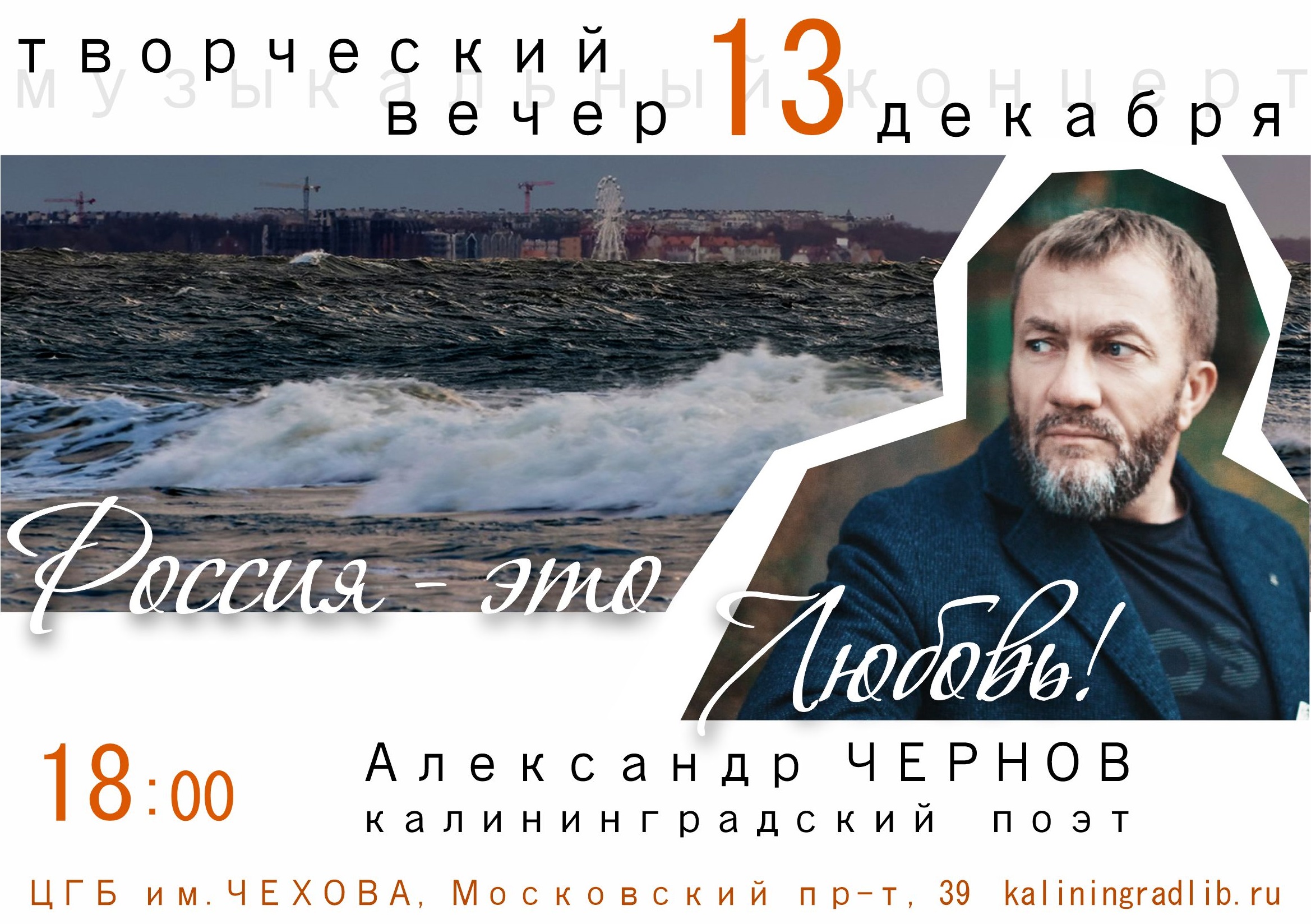 13 декабря в 18.00 в «Чеховке» состоится творческий вечер калининградского поэта Александра Чернова.