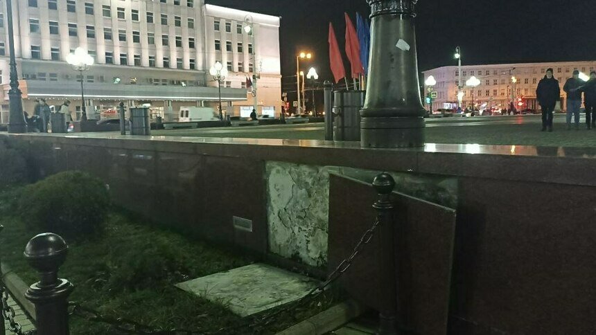 С парапета на площади Победы отвалились гранитные плиты (фото)