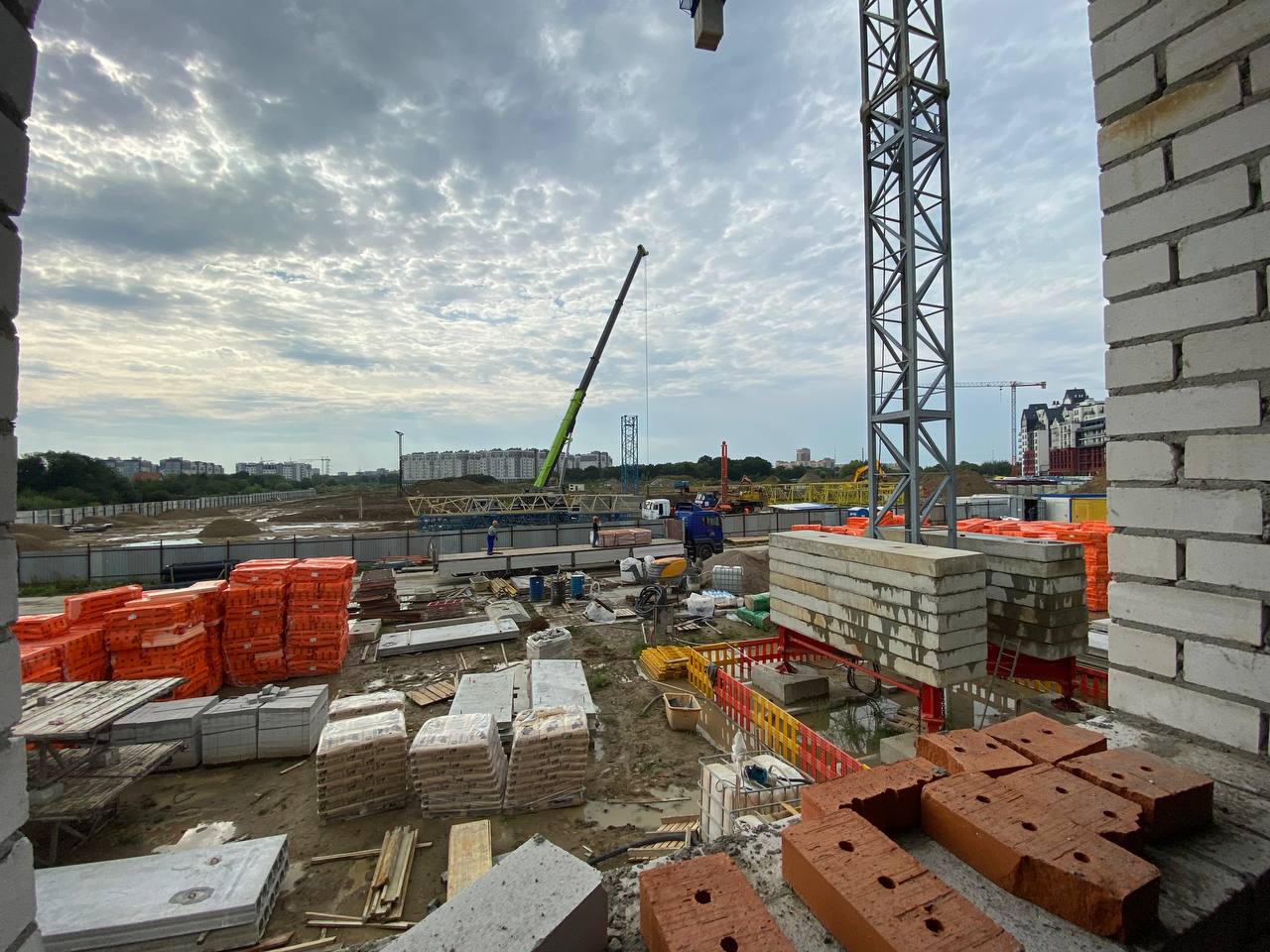 Сейчас на объекте активно ведутся работы по устройству фундаментов первого блока, ведется монтаж опалубки, армирование и бетонирование монолитного пояса, кирпичная кладка внутренних и наружных стен.