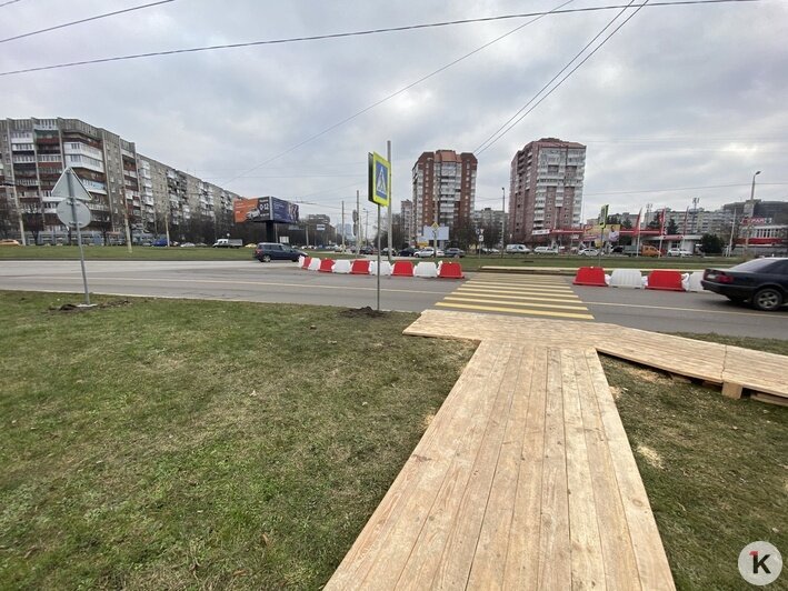 Пешеходный переход возле здания бывшей таможни убрали. Теперь перейти через Буткова можно ближе к круговой развязке на Московском проспекте. Первые же пересекающие трассу люди обратили внимание на перепады тропинок и проезжей части: с коляской не пройти. Сам тротуар из деревянного настила. Это временное решение: новая схема действует, пока строят дублёр двухъярусного моста. У властей есть планы в будущем легализовать «зебру», поскольку она станет частью большого пешеходного маршрута от музейного квартала.