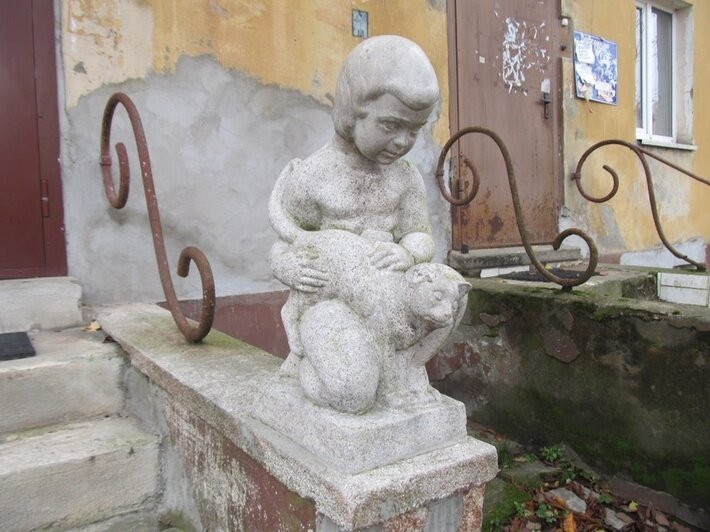 Фигура мальчика с кошкой была выполнена из ракушечника в начале XX века преподавателем Кёнигсбергской академии художеств Лизелоттой Штайнер и установлена у дома 1922 года постройки на нынешней ул. Коммунальной, 73. Штайнер и сама жила здесь с мужем до войны.