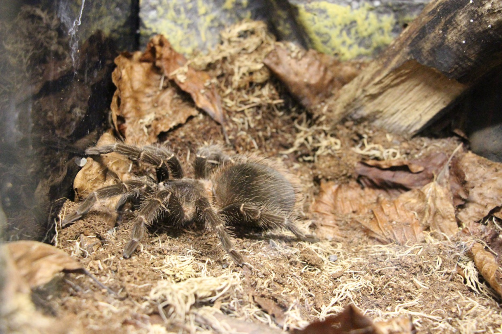 Экспозиция небольшая, но очень впечатляющая: 6 видов паукообразных — 5 видов пауков и 1 вид скорпиона.