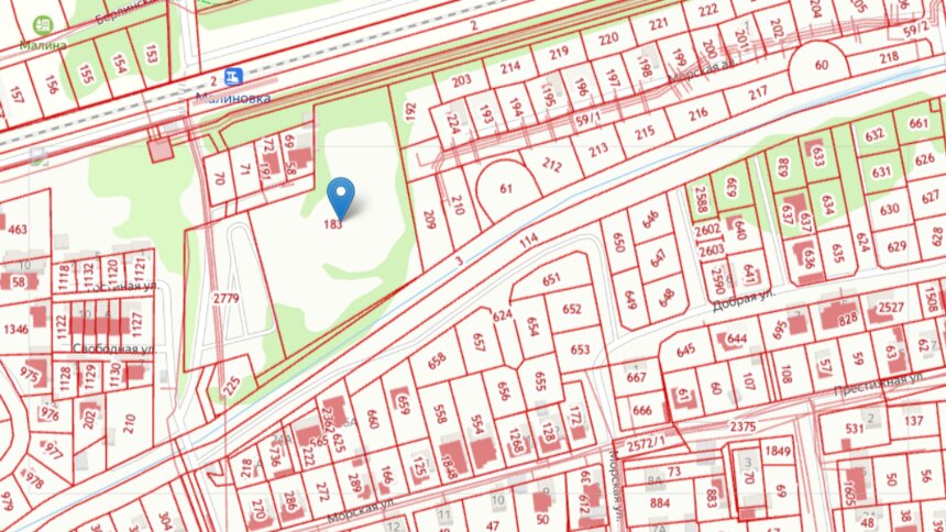 Скриншот кадастровой карты В Малиновке под Зеленоградском напротив ж/д станции разрешили возвести гостиничный комплекс.