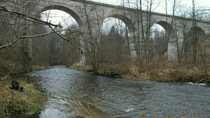 Пятиарочный путепровод через реку Красную возвели в начале XX века. Высота строения больше 25 метров — это один из самых высоких мостов в регионе.