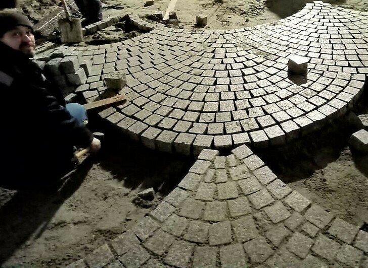 В Зеленоградске на ул. Володарского начали укладывать брусчатку.
