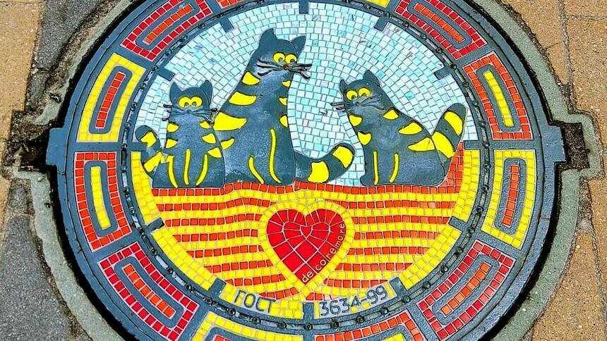 О том, что в Зеленоградске канализационные люки стали украшать мозаикой с котами, сообщалось в феврале .
