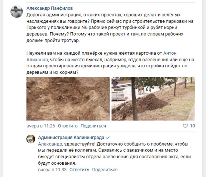 Возле поликлиники на Горького дорожники изрезали корни молодых лип. Об этом сообщил горадминистрации в комментариях на странице «ВКонтакте» пообещал, что власти проведут проверку.