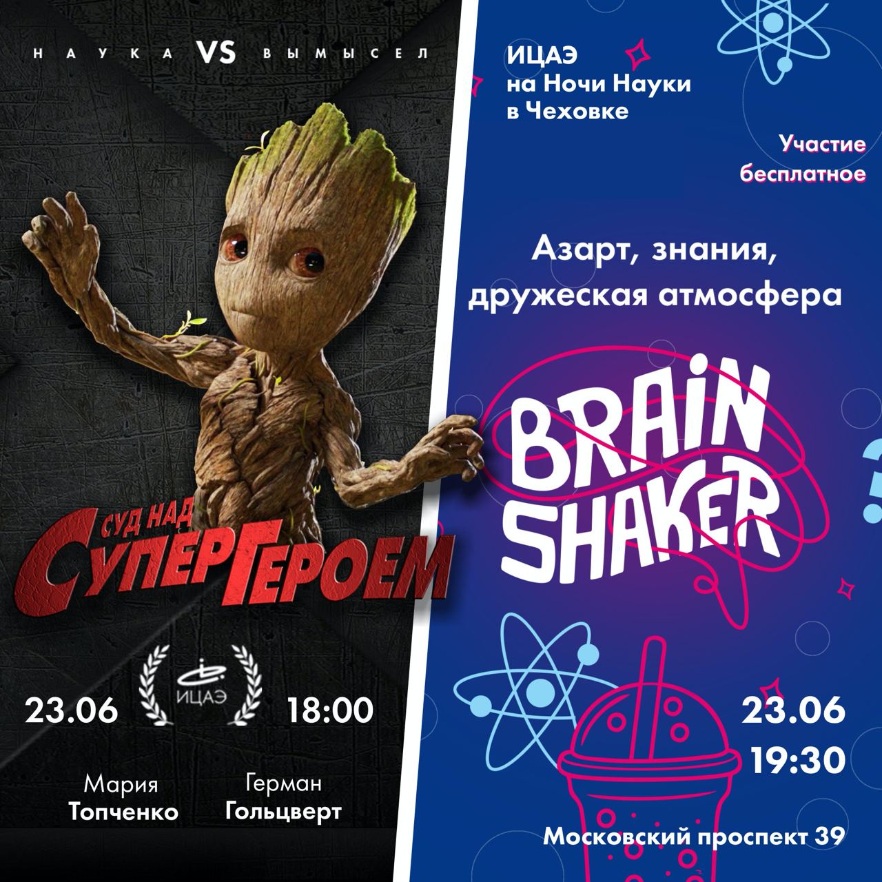 18.00 — научно-популярное шоу «Суд над супергероем» Информационного центра по атомной энергии Калининграда. В качестве «адвоката супергероя» выступит Герман Гольцверт, лаборант курса «Ботаника» высшей школы живых систем БФУ им. И. Канта, сотрудник Карбонового полигона «Росянка», член Русского ботанического общества. А «прокурором» станет биоинженер и биоинформатик Мария Топченко.